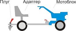 Прицеп-адаптер 2-х колесный к мотоблоку можно использовать в различных режимах. К нему сзади можно цеплять плуг, окучник или любое другое навесное оборудование. Адаптер является универсальным и подходит для любого вида мотоблоков. Имеется удобный рычаг для подъема навесного оборудования во время разворота. К мотоблоку цепляется с помощью универсальной сцепки!