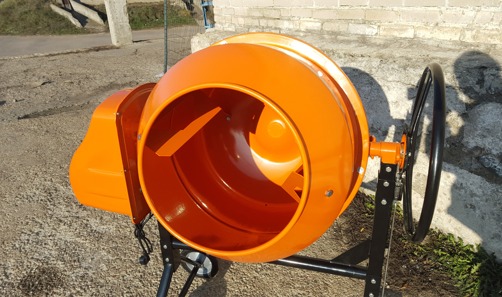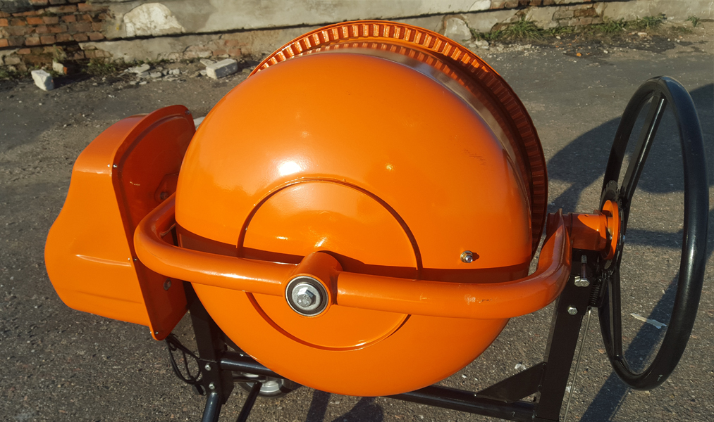 Цельное дно барабана без вставок и болтов меньше загрязняется раствором, а также бетономешалку проще очистить после использования.