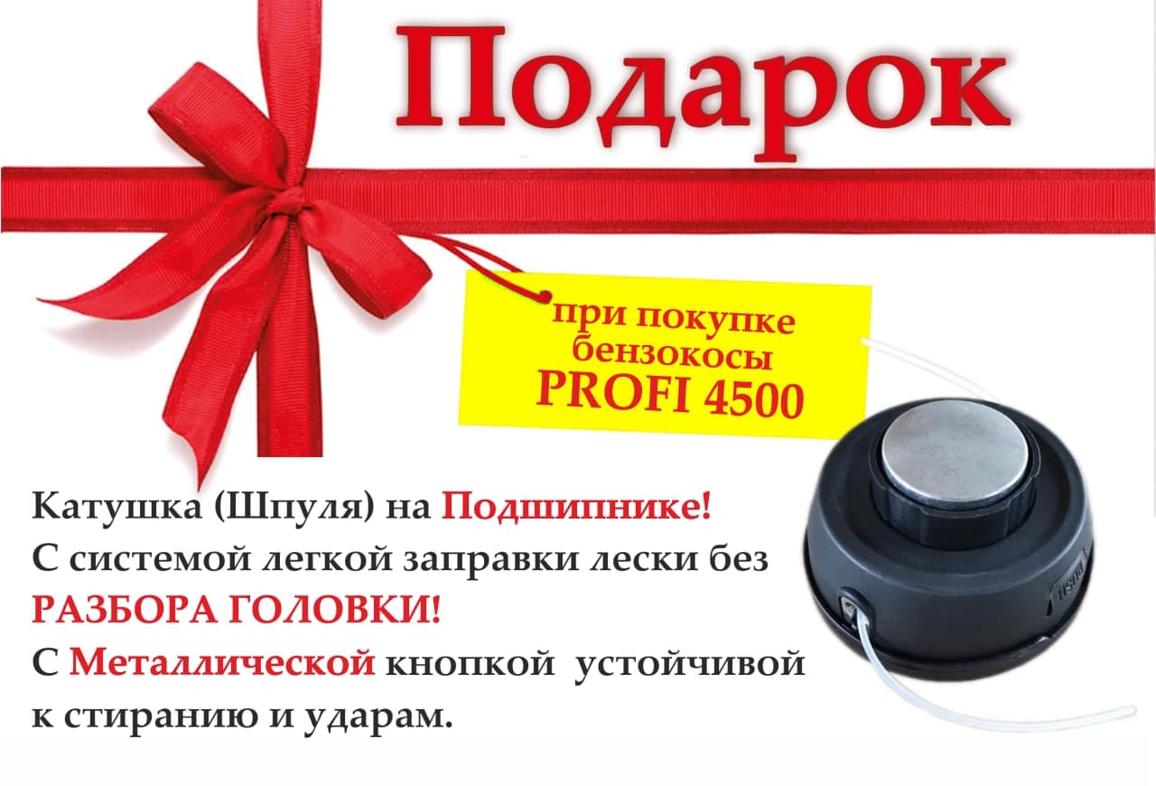 + ПОДАРКИ: трёх-лепестковый нож (двойной), леска, ремень на одно плечо, катушка, свеча, смазка, масло, перчатки, беруши.