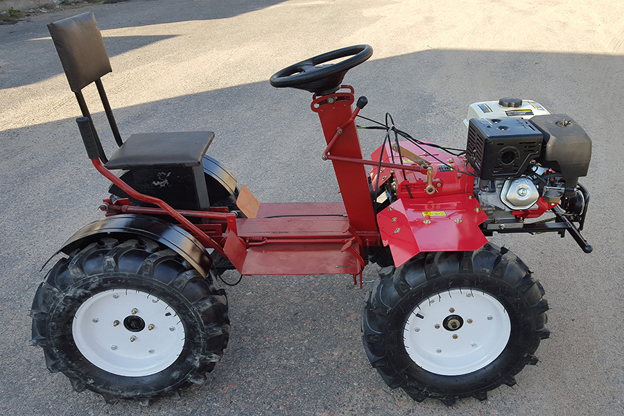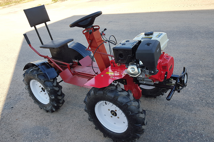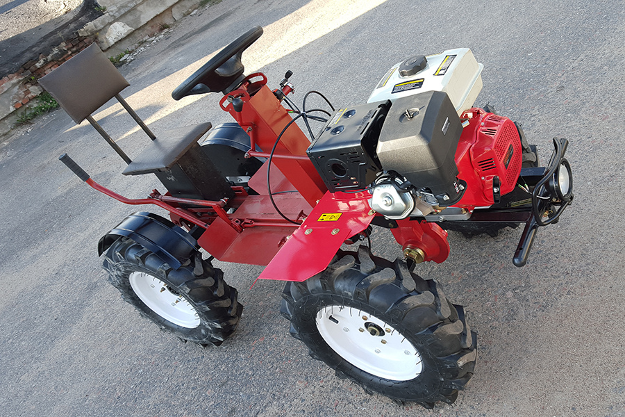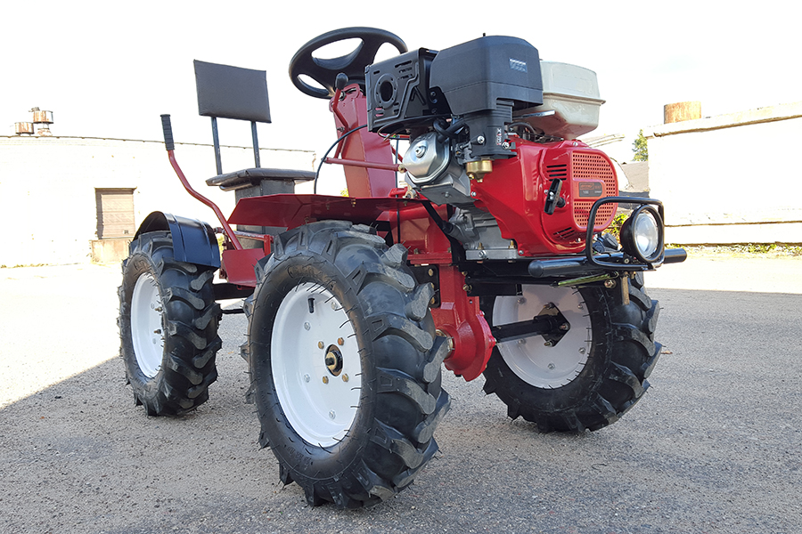 - Мотоблок оснащается ВОМ (валом отбора мощности), что позволяет использовать навесное оборудование с двигающимися механизмами;
