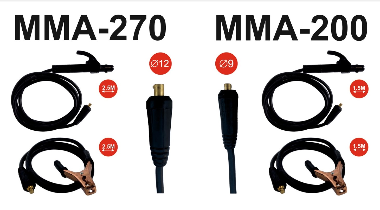 Shtenli ММА 270 PRO в кейсе с длинными кабелями и профессиональными большими Евроразъемами. Сварочный ток плавно регулируется в пределах от 20 до 270 А, в зависимости от толщены металла, поэтому аппарат может работать электродами диаметром до 4 мм и приваривать детали толщиной до 6 мм.