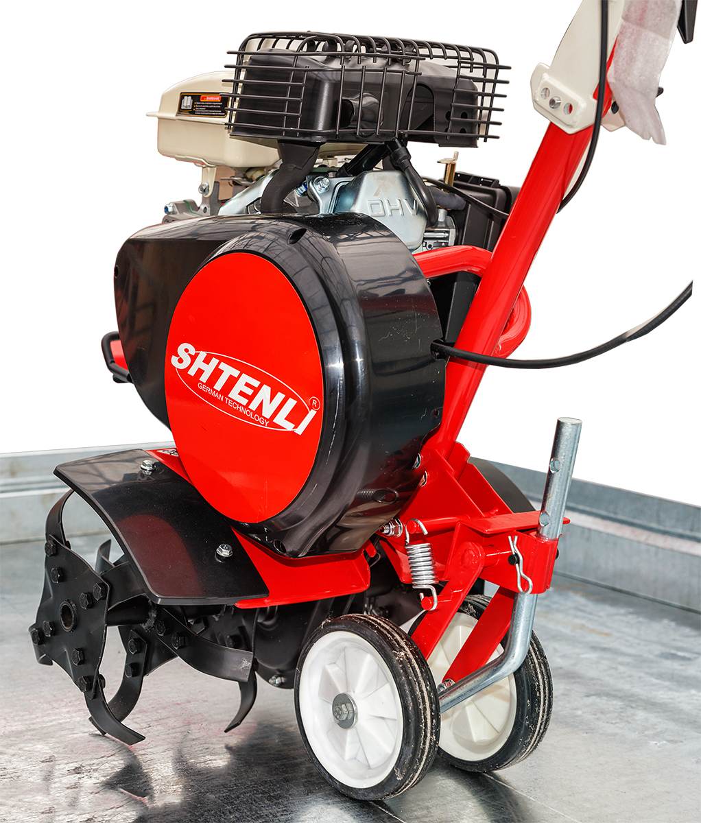 Мотокультиватор Shtenli 7000 Expert - представляет собой самоходную машину для подготовки и обработки почвы под посадку садовых и огородных культур, растений, не предназначен для транспортировки, буксировки или толкания грузов и/или прицепных устройств, приводится в движение бензиновым двигателем мощностью 6,0 л.с., удержание культиватора во время работы и управление им осуществляется идущим за ним оператором за две ручки. Обработка почвы осуществляется ножами фрез (устанавливаются вместо транспортировочных колес), которые при вращении отрезают пласты почвы, крошат и перемешивают их, одновременно вызывая поступательное движение культиватора. Мотокультиватор поставляется без колес. Возможности присоединения навесного оборудования нет. Вала отбора мощности нет.