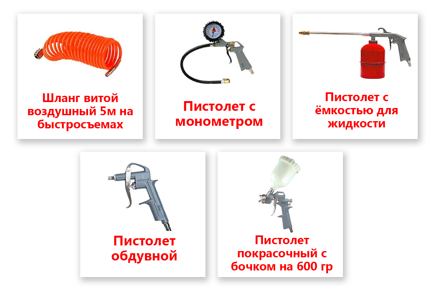 - Два выходных штуцера (возможность использование нескольких пневмоинструментов одновременно);