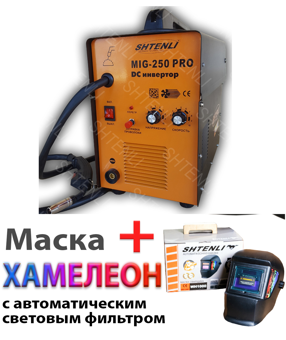 Сварочный полуавтомат Shtenli MIG 250 PRO (без евро разъема) + Маска